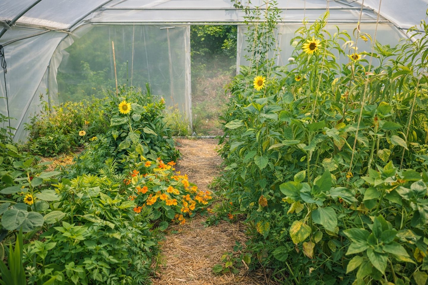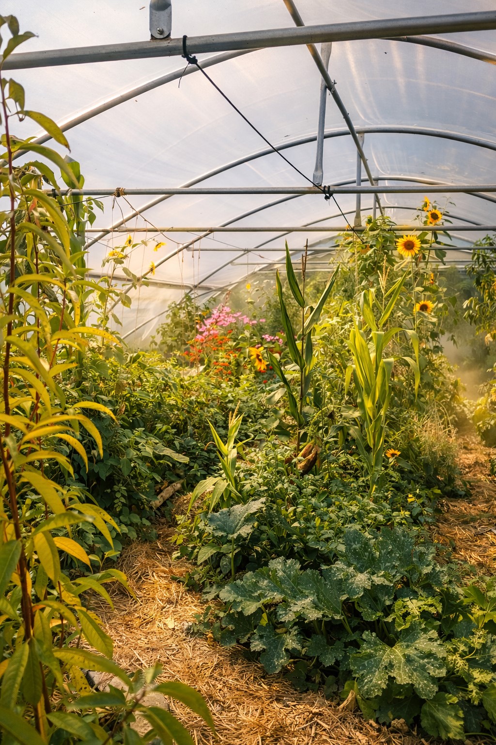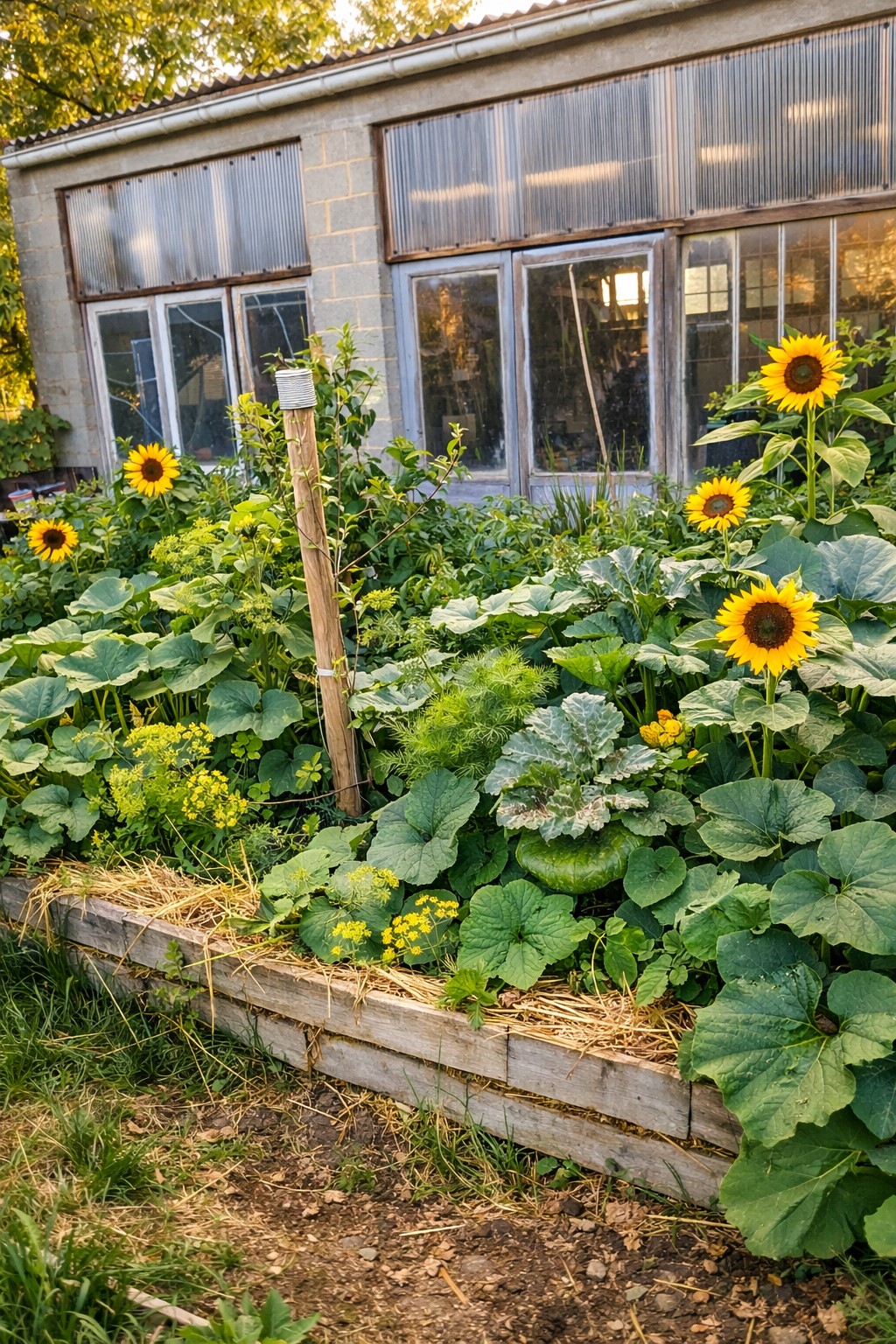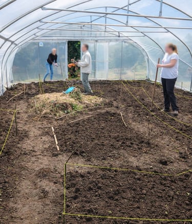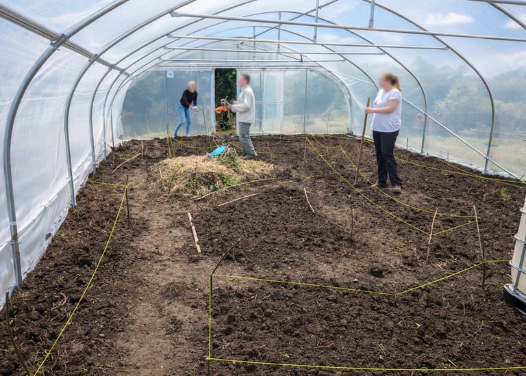 Lasagnes, cultures au sol, serre… une diversité de zones pensées pour apprendre dans des conditions réelles et variées.