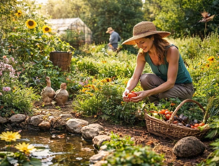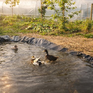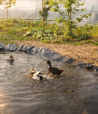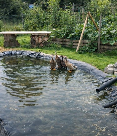 Un terrain riche en biodiversité avec canards coureurs indiens, poules, lombricompost et une grande diversité d’insectes auxiliaires.
