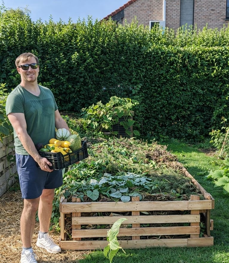 Depuis près de dix ans, j’expérimente et applique ces principes sur le terrain : potagers nourriciers, sol vivant, cultures associées, intégration des animaux et conception de designs durables adaptés au climat belge.