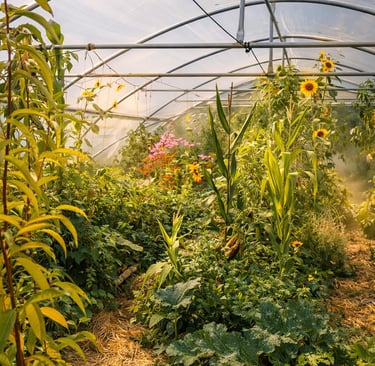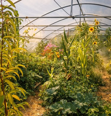 Sur notre terrain, vous découvrez une grande diversité de modes de culture : en buttes, en lasagnes, directement en sol vivant, en serre et en extérieur, au fil des saisons.
